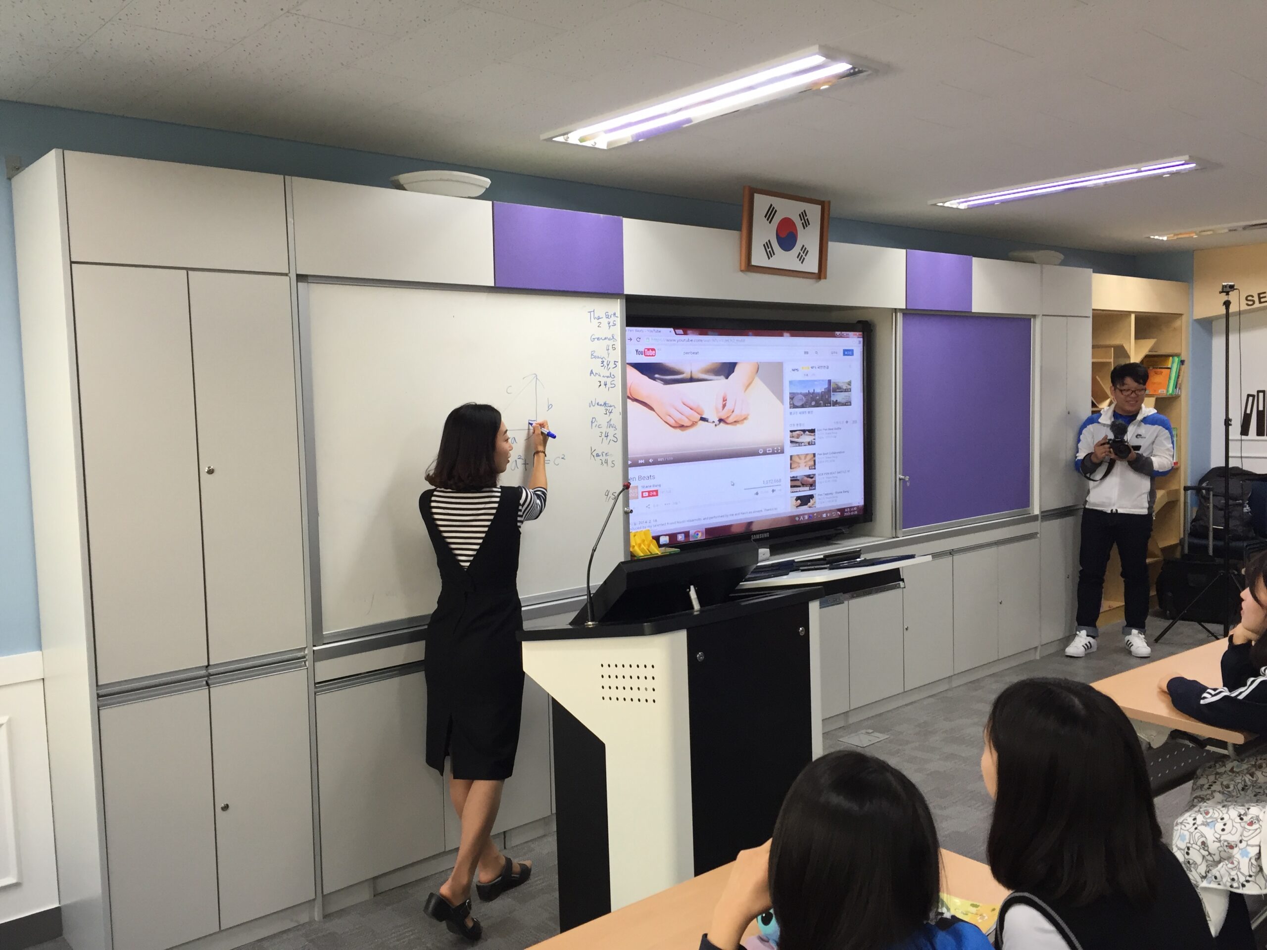 By teaming up with Anna Kim we both taught the Pythagoras Theorem, Chanpil Jung and his team filmed each session and two Middle School classes received a series of team taught lessons on how Music and Math connected through numbers. An outline of my lessons is linked below: